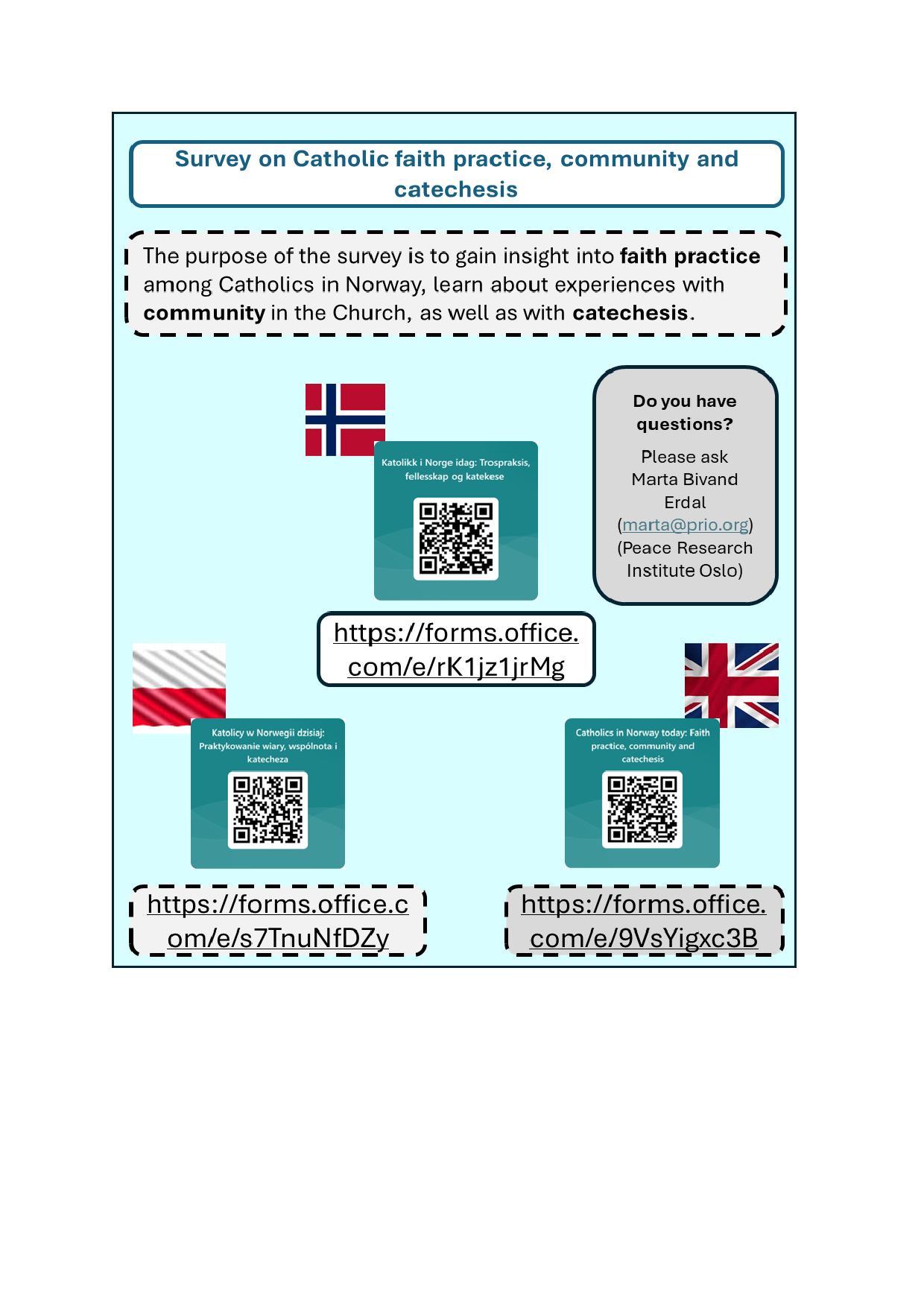 At present, there is very little research on Catholics in Norway, even though the registered members of the Catholic Church make up about 3% of the Norwegian population.
