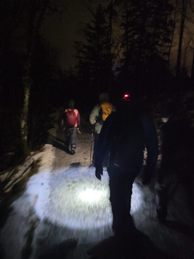 Kort rapport fra turen fra en av dem som gikk; Ruten var krevende som alltid. I tillegg til lengden og stigningen, var det tordenvær – det tordnet kraftig fire ganger. Fra Brushytta snødde det litt, og tradisjonen tro kom det regn. Han var hjemme 4.30.